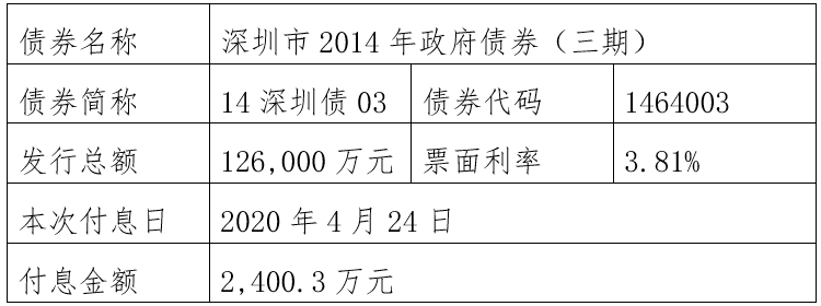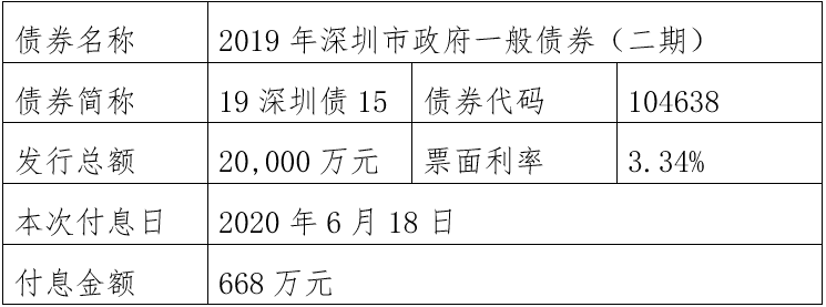 深圳市政府债券2020年3月至6月还本付息公告